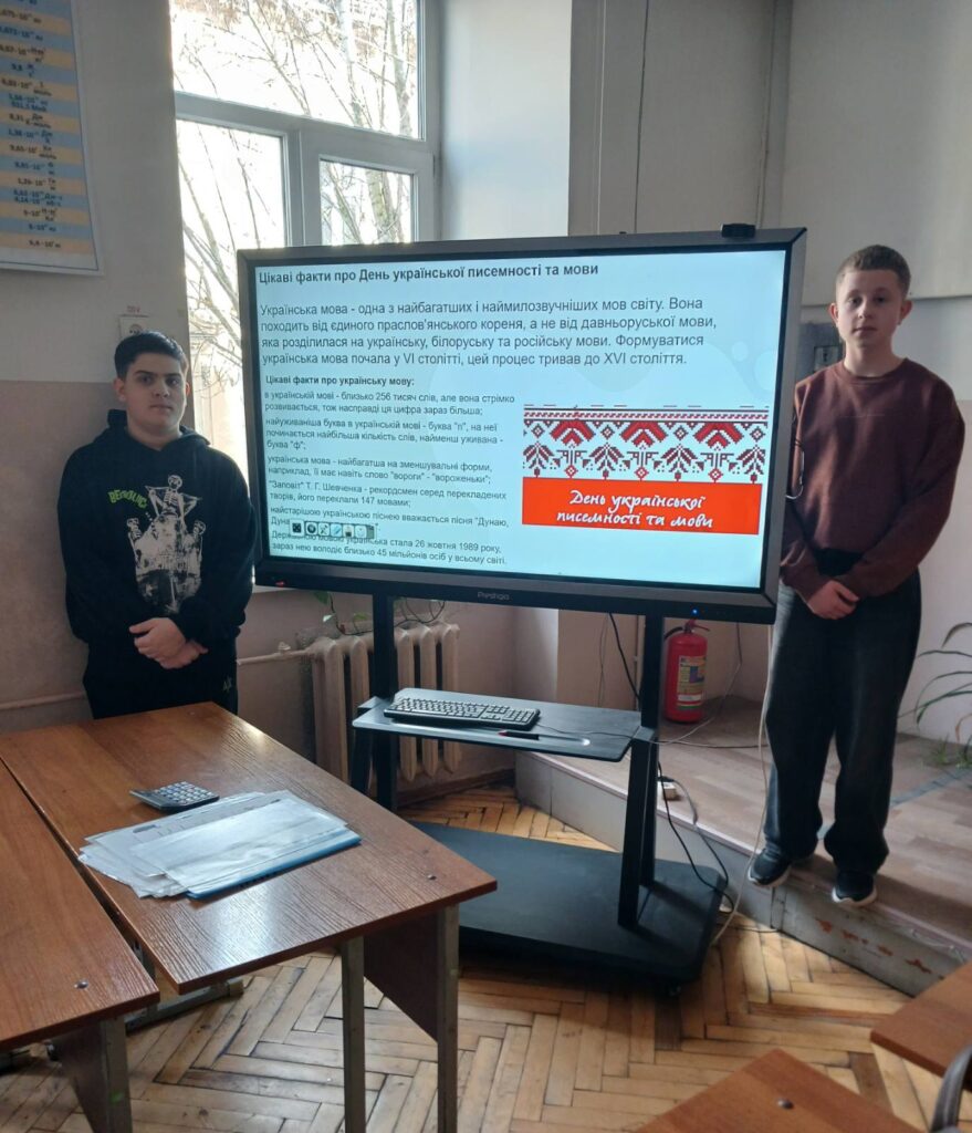 Учні 8-а класу підготували інформаційну хвилинку ,,Цікаві факти про мову та писемність”, читали поетичні твори. Діти перевірили свої знання української, пройшовши тест,, Як добре ви знаєте українську – 3″