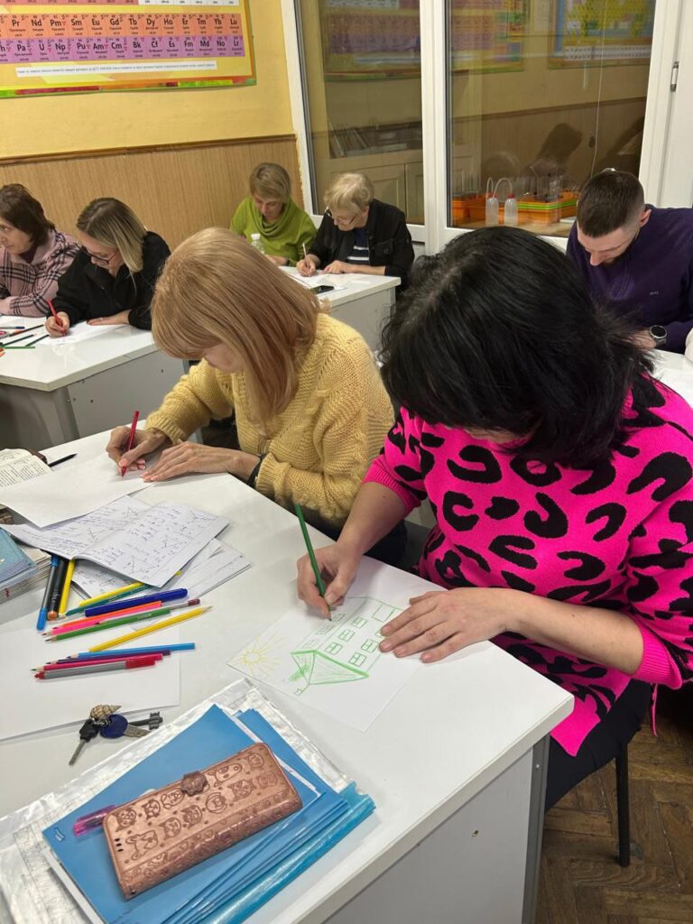Також педагоги і батьки відновлювали свій ресурс ,застосовуючи арттерапевтичну вправу ‘Дім моєї сили’.