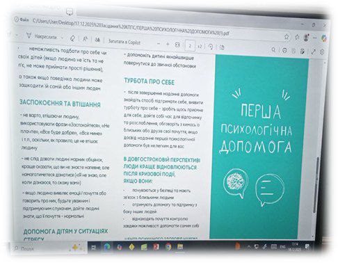 У середу 17 грудня у рамках засідання Команд психолого-педагогічного супроводу ліцею 52 Львівської міської ради відбувся тренінг ‘Першої психологічної допомоги’ згідно протоколу МААСЕ.